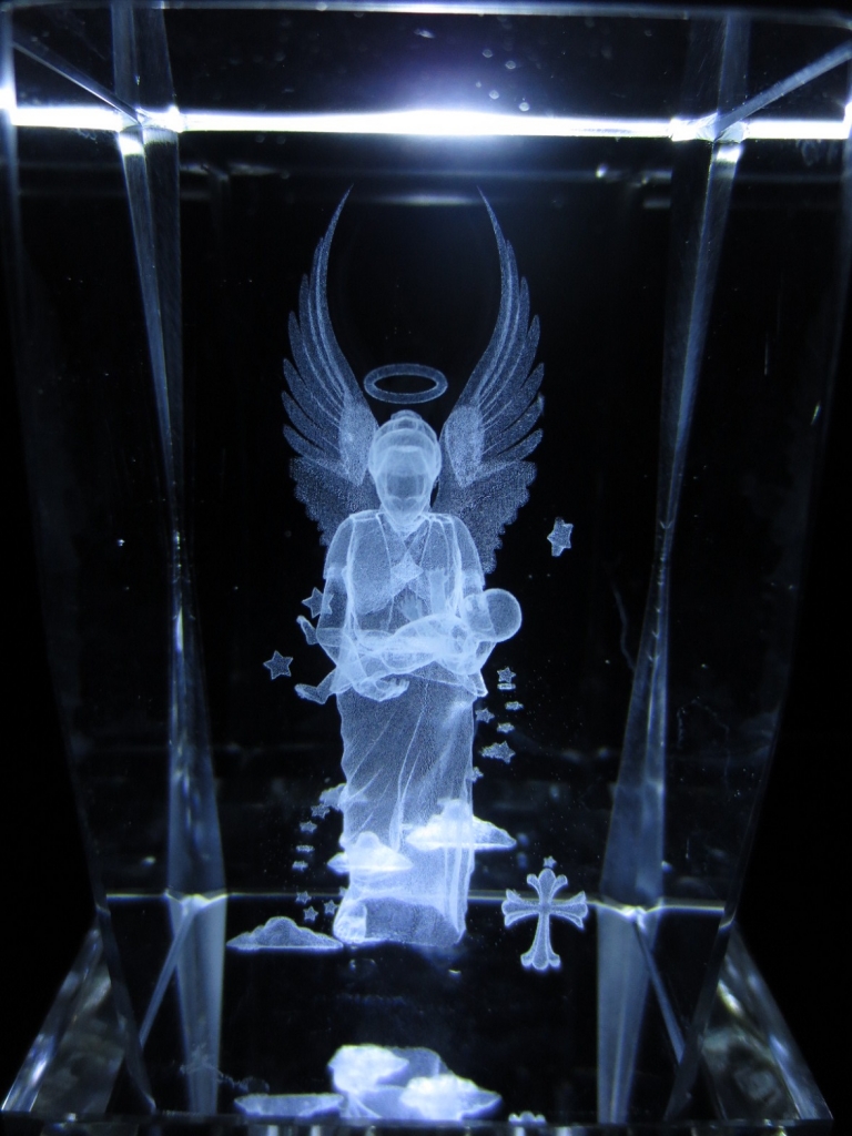Wholesale – 3D Crystal Laser Engraved Block – Angel with Child