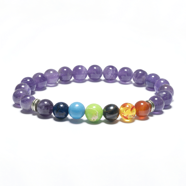 Wholesale – 8mm Gemstone 7 Chakra Bracelet without Box – Amethyst