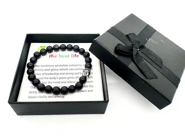Buddha Blue Sandstone Gemstone Bracelet – Gift Box Included