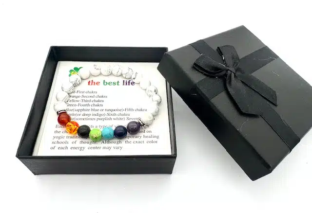 Wholesale – 7-Chakra White Howlite Gemstone Bracelet – Gift Box Included