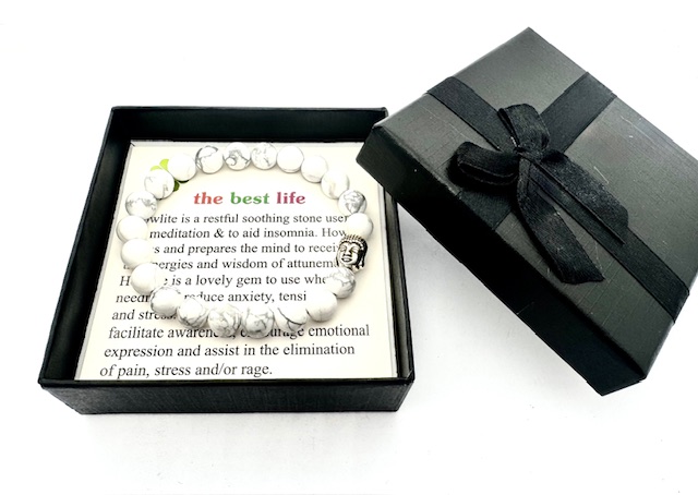 Wholesale – Buddha White Howlite Gemstone Bracelet – Gift Box Included
