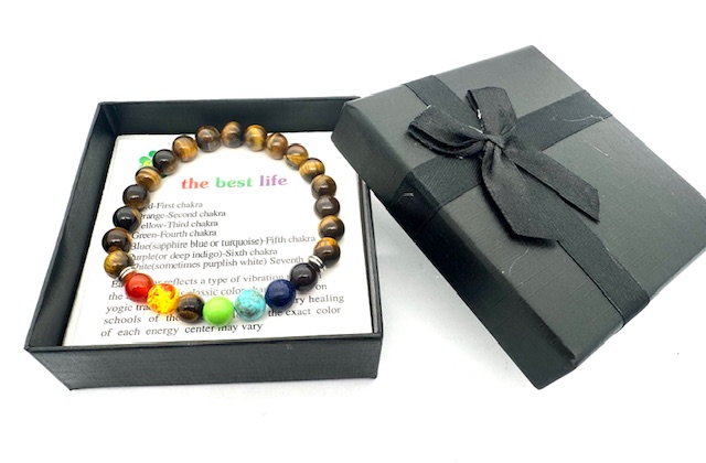 Wholesale – 7-Chakra Tiger Eye Gemstone Bracelet – Gift Box Included