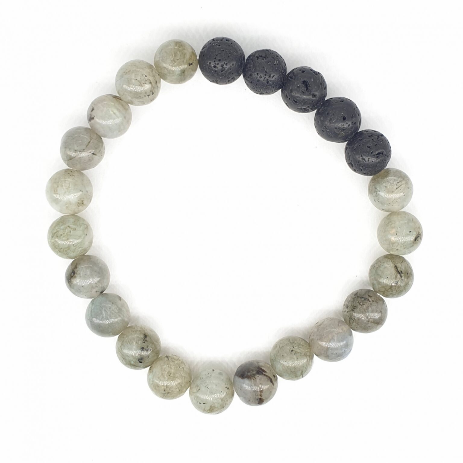 Wholesale – 8mm Bracelet with Gift Box – Labradorite and Lava Stone