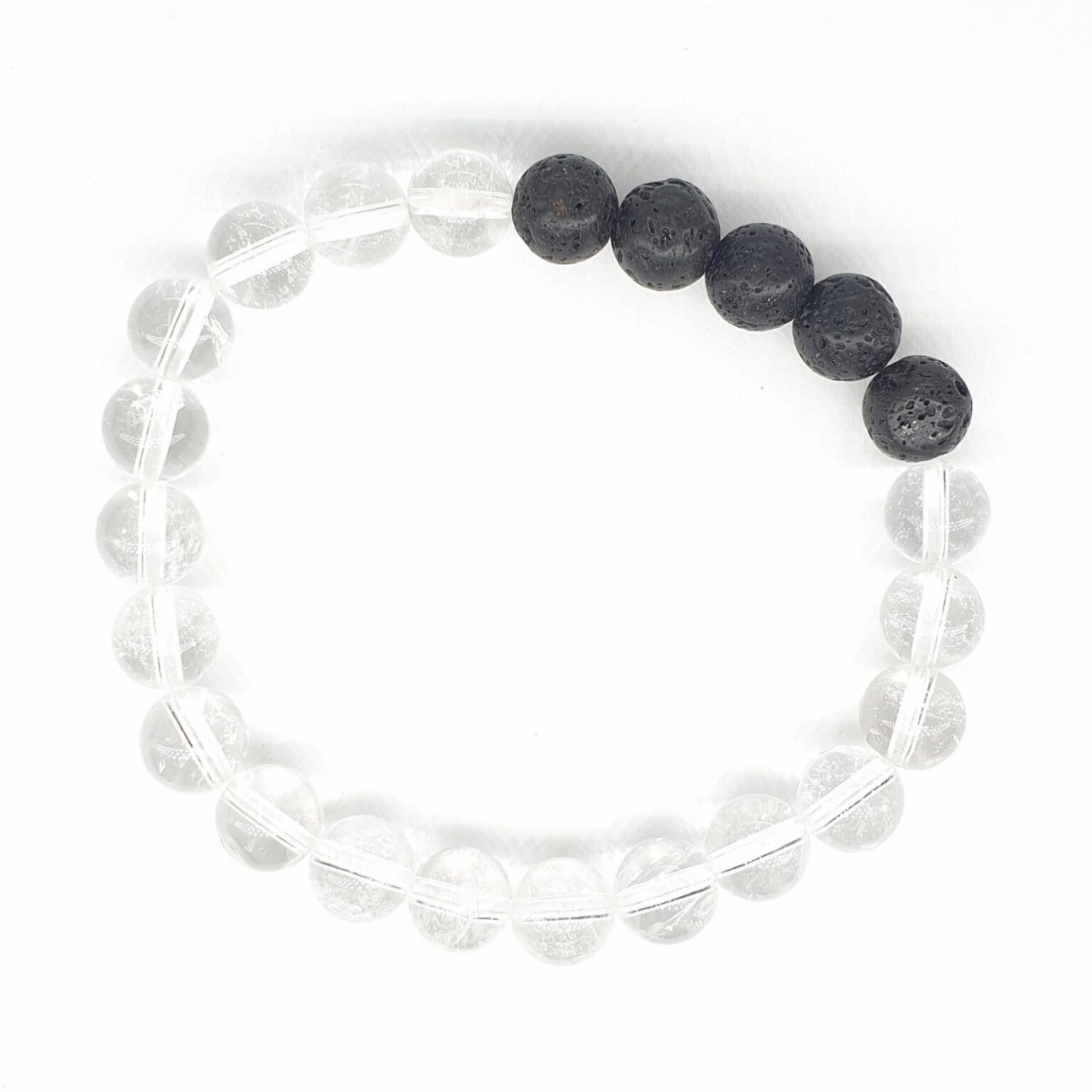 Wholesale – 8mm Bracelet with Gift Box – Rock Crystal and Lava Stone