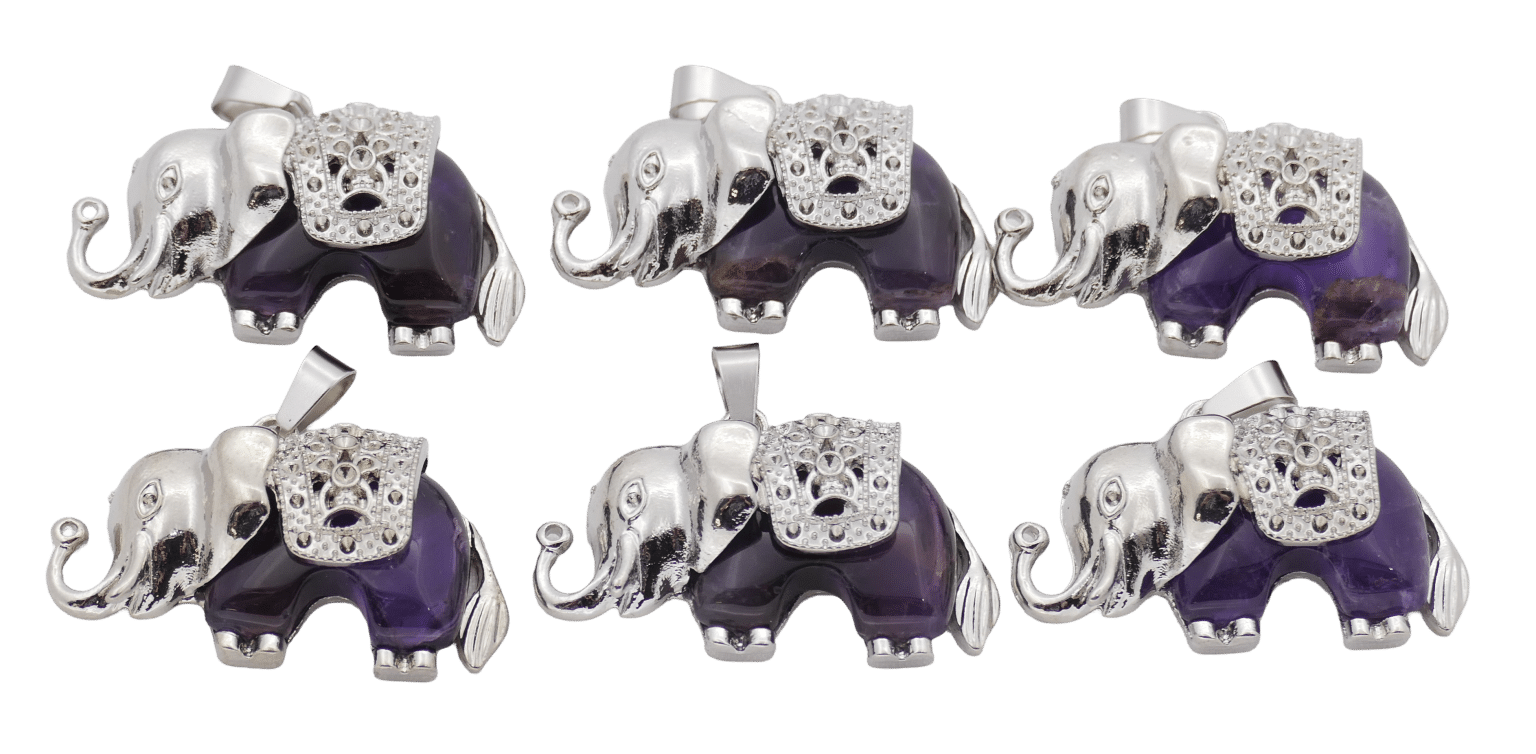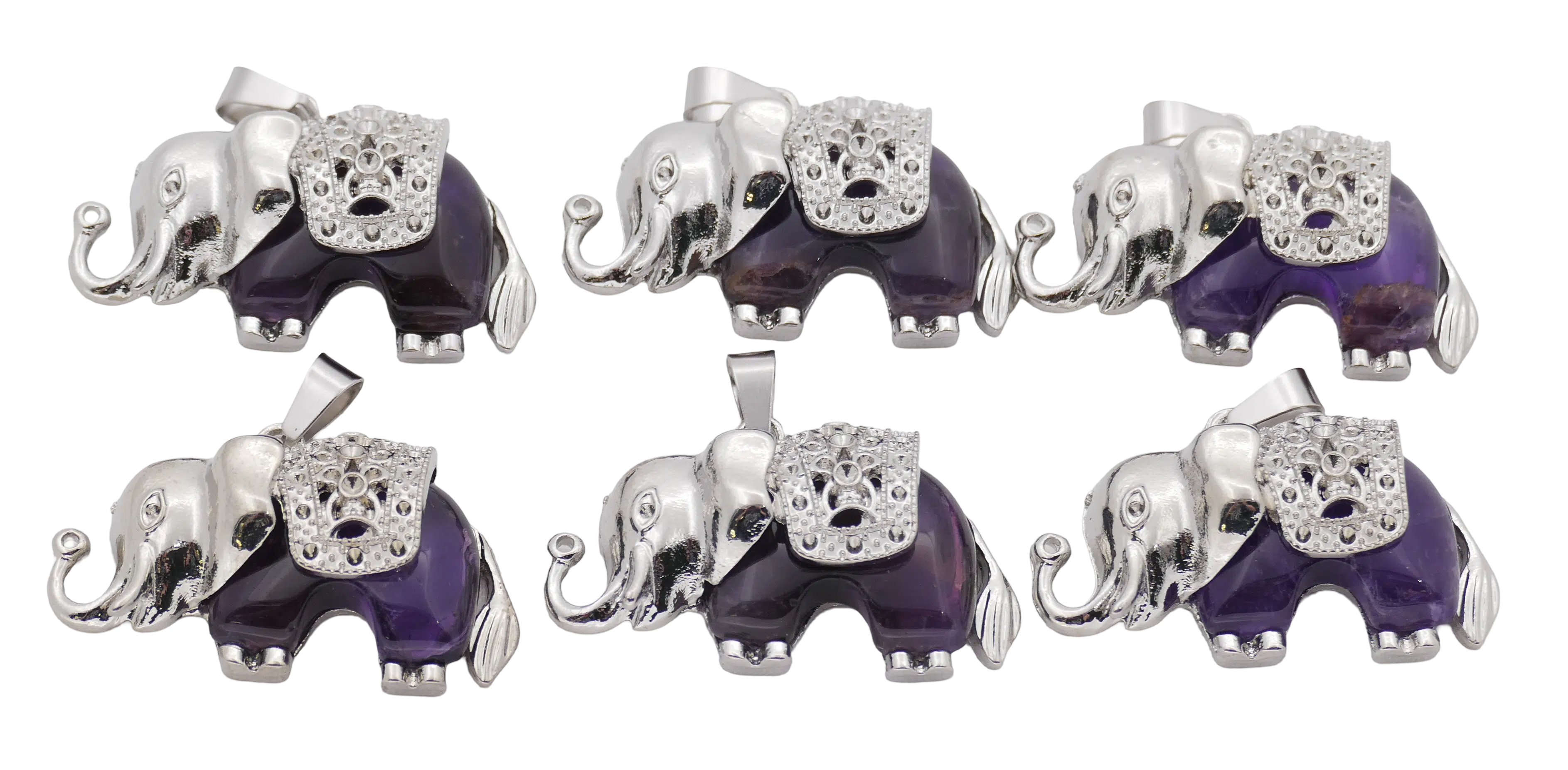 Wholesale – Amethyst Elephant Gemstone Pendants (Set of 6 Pieces)