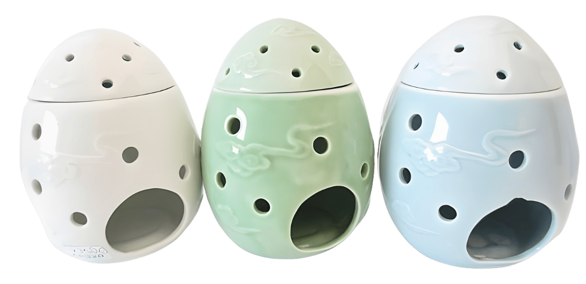 Oilburner set of 3 with a Buddhahead (egg shaped). The Buddha head is very nice and detailed en looks very comforting.
