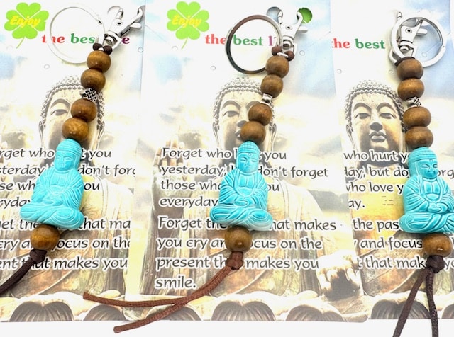 Wholesale – Buddha Keychain with Wooden Beads – Turquoise