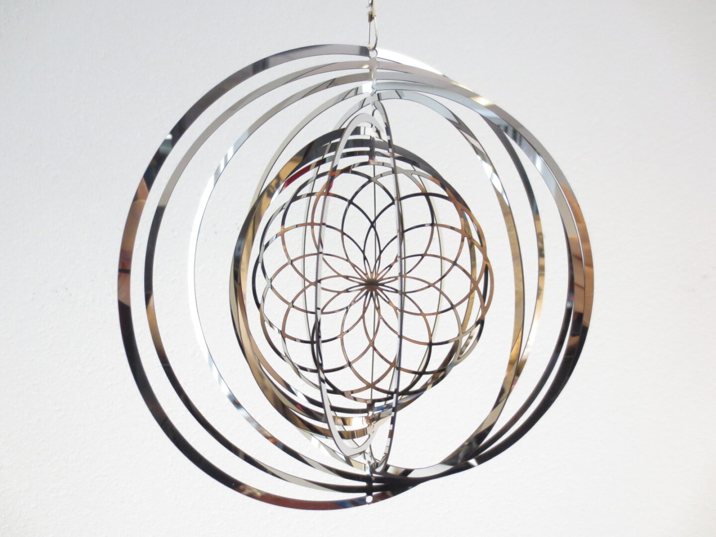 The beautiful spinner features a modern design and reflective finish that bring it to life when the light hits it. Made of 1mm stainless steel for durability and weather resistance, this design makes a great addition to any lawn or garden. A perfect choice for indoor or outdoor décor.