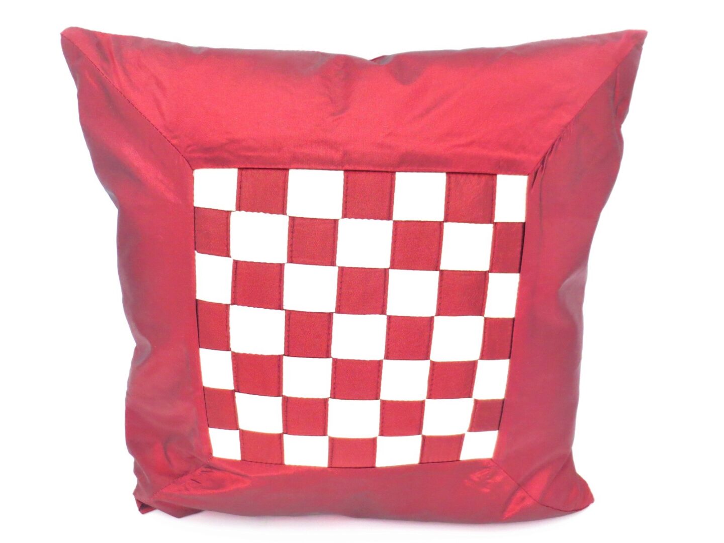 Very nice cushion cover, the middle of the cover is filled with white/dark red squares.