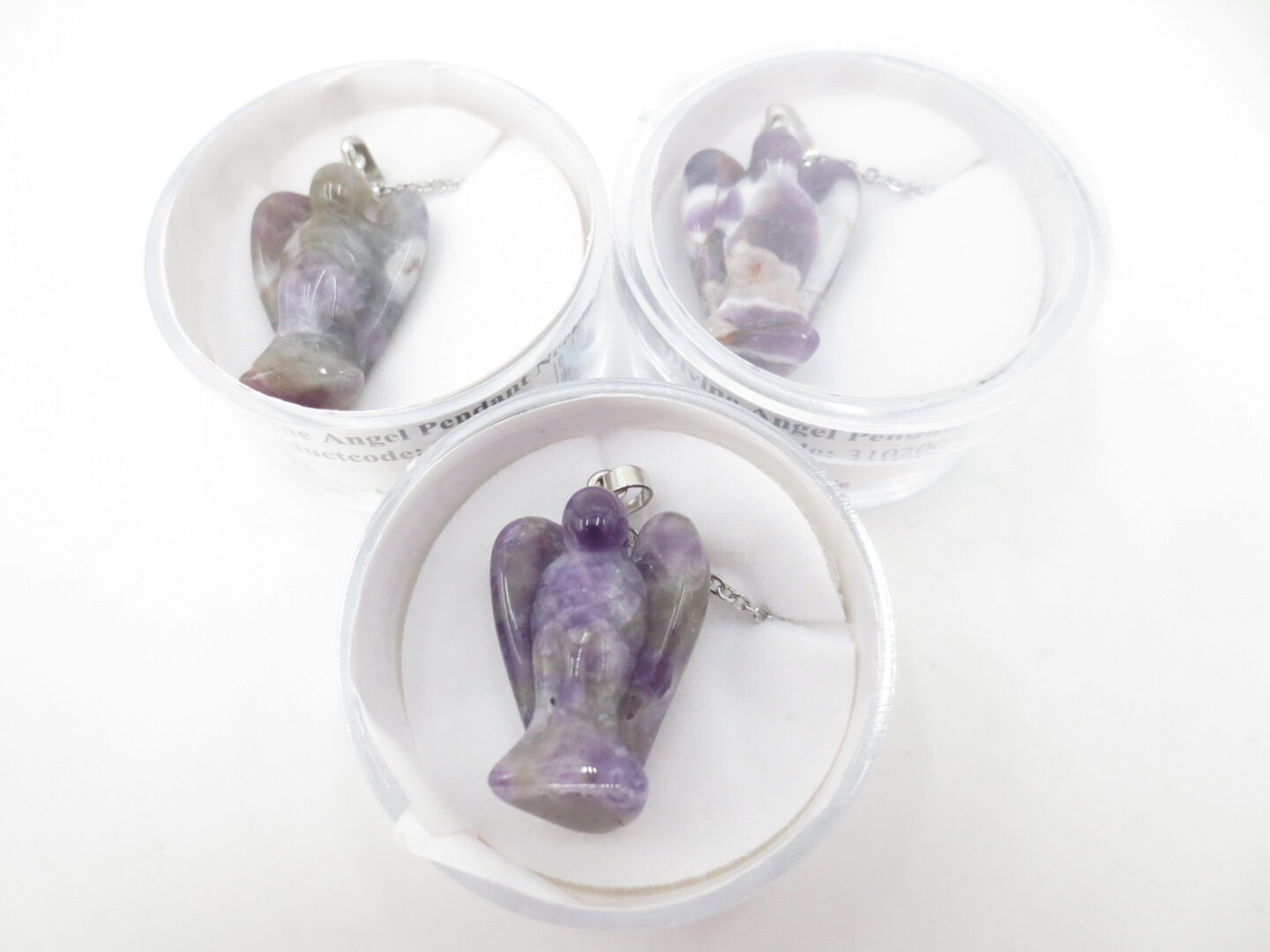 Gemstone angel necklace, made from real gemstones. The chain is lead-and nickel-free. Each necklace comes in a separate round gift box.When you buy a complete set (36 pieces), the display set will be included.Size:diameter gemstone angel = 25mmMimimum purchase is 3 pcs