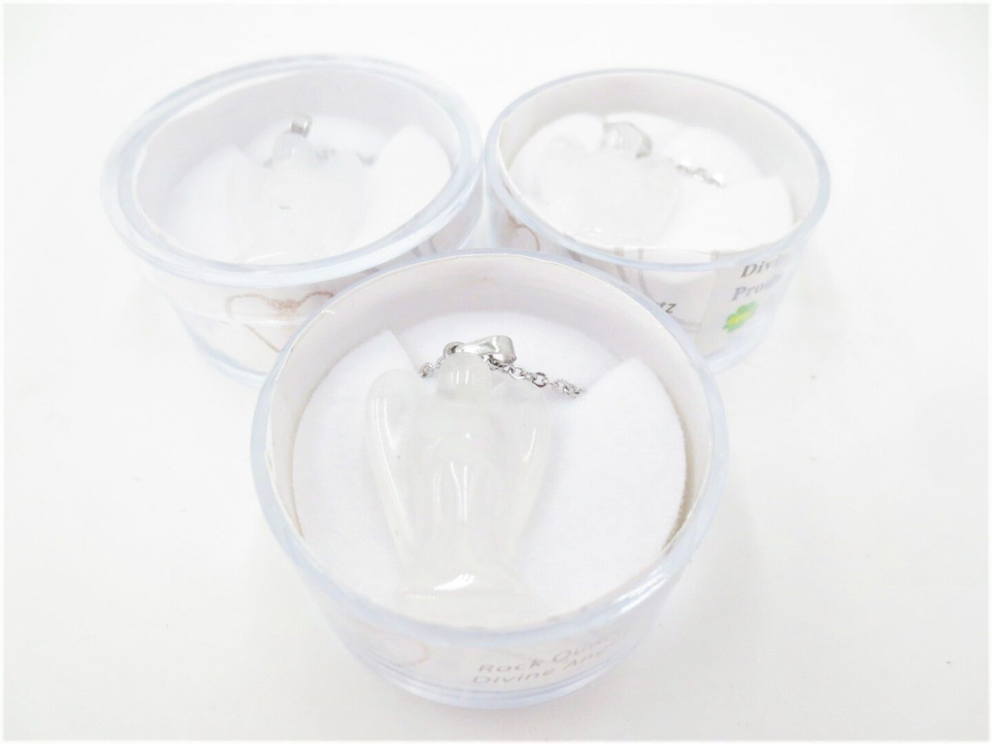 Gemstone angel necklace, made from real gemstones. The chain is lead-and nickel-free. Each necklace comes in a separate round gift box.Size:diameter gemstone angel = 25mmMimimum purchase is 3 pcs