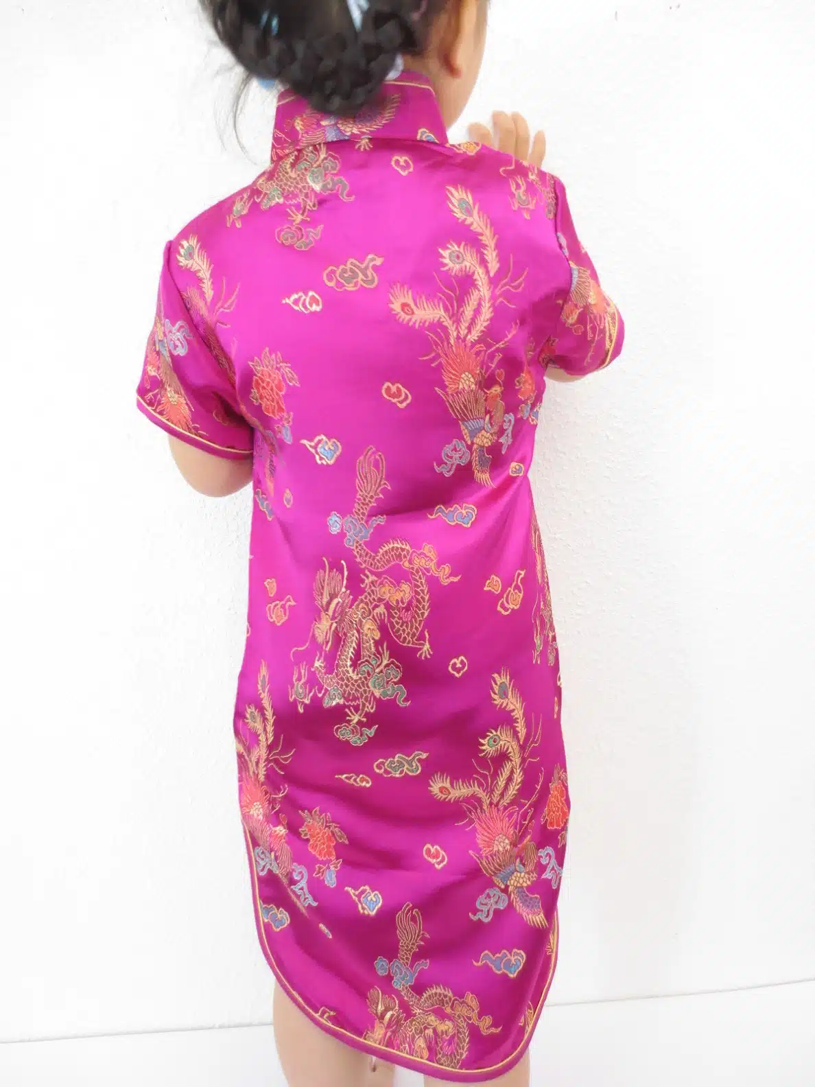 Sleeveless dress of Chinese silk / satin with beautiful dragon print.Very nice dress for the summer days! Available in different colors