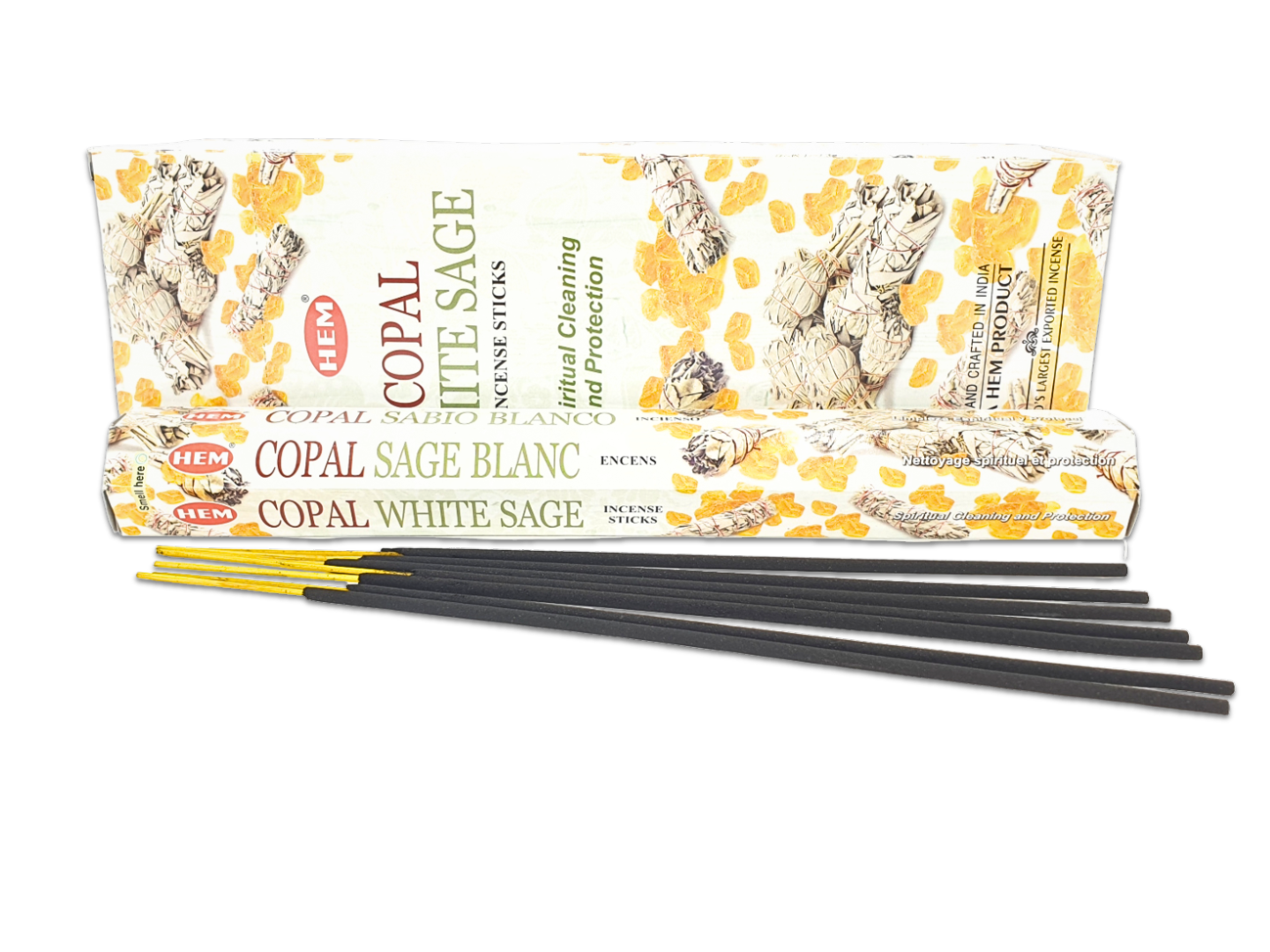 HEM Copal White Sage Hexa incense combines the bright, resinous aroma of copal with the herbal, cleansing scent of white sage. This fresh, slightly woody blend is often chosen for simple cleansing rituals, meditation and creating a clear, focused atmosphere in living spaces and practice rooms.