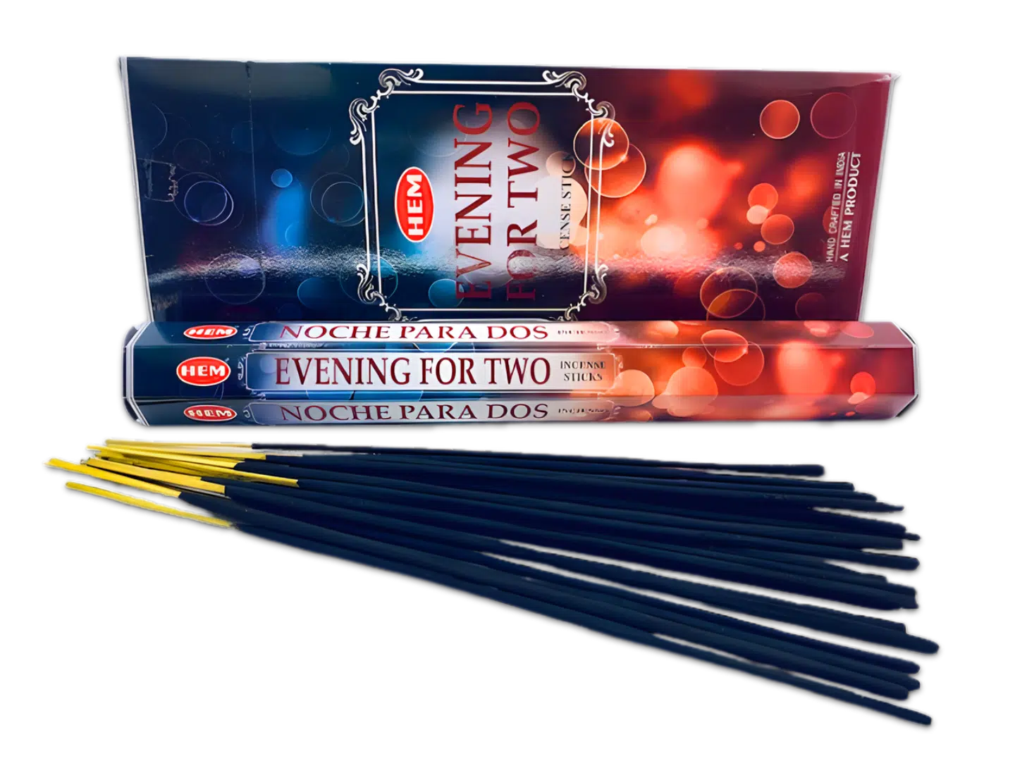 HEM Evening For Two Hexa incense has a soft, romantic fragrance with warm floral and slightly sweet notes. It is designed to create an intimate, relaxed atmosphere for quiet evenings, special occasions or cosy moments at home.