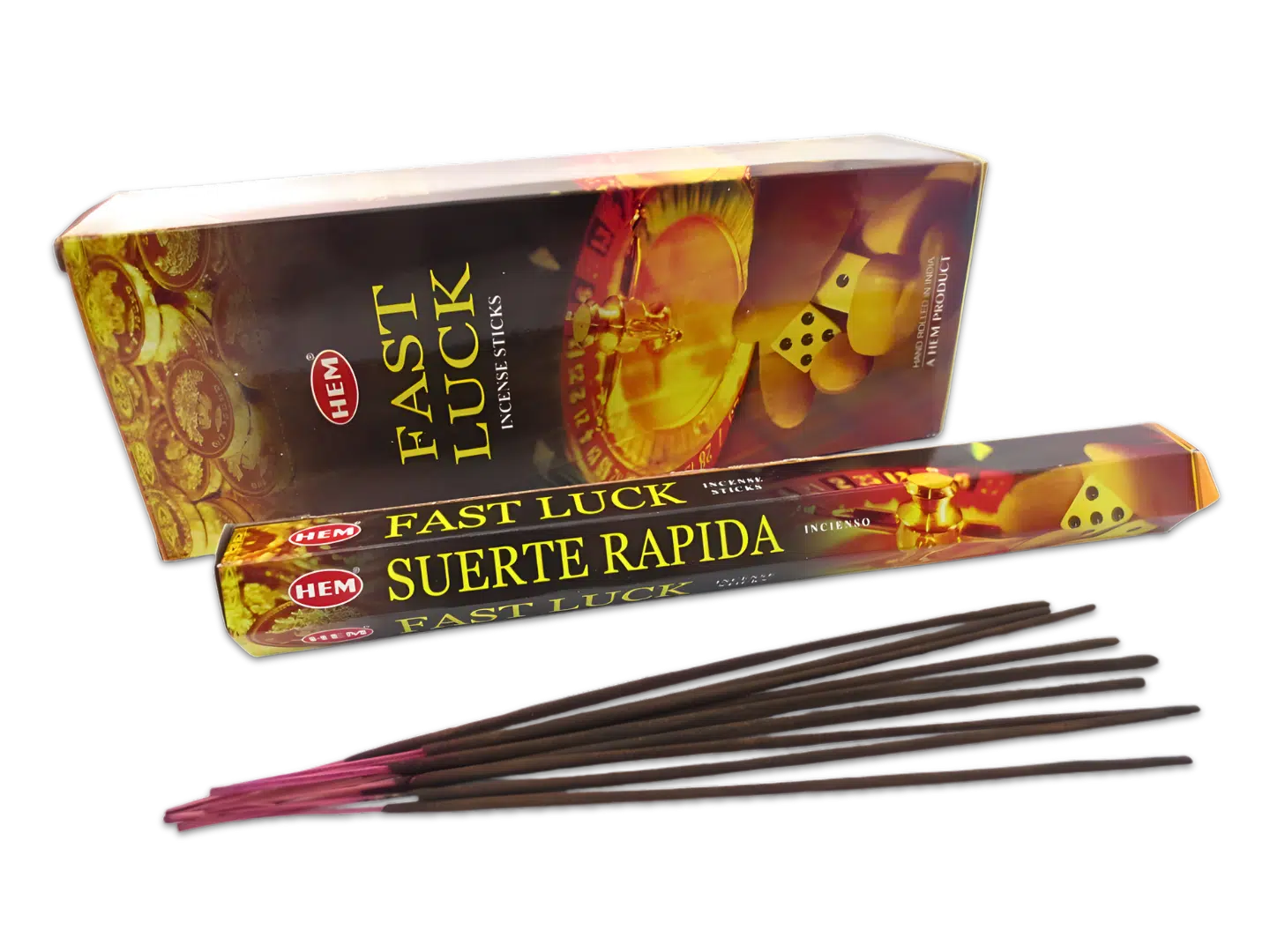 HEM Fast Luck Hexa incense has a sweet, slightly spicy fragrance with soft citrus and herbal notes. It is often used in spiritual and ritual settings where themes of opportunity, new beginnings and positive focus are important, as well as for creating a warm, inviting atmosphere in homes, studios and customer spaces.