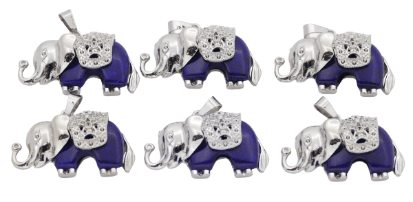 Wholesale – Lapis Lazuli Elephant Gemstone Pendants (Set of 6 Pieces)