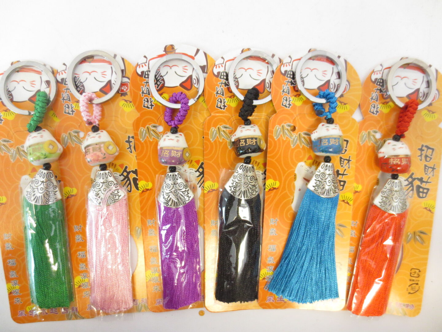 Wholesale – Lucky Maneki Neko Cat Keychain Mixed Colors – Japanese Feng Shui Charm (6pcs)