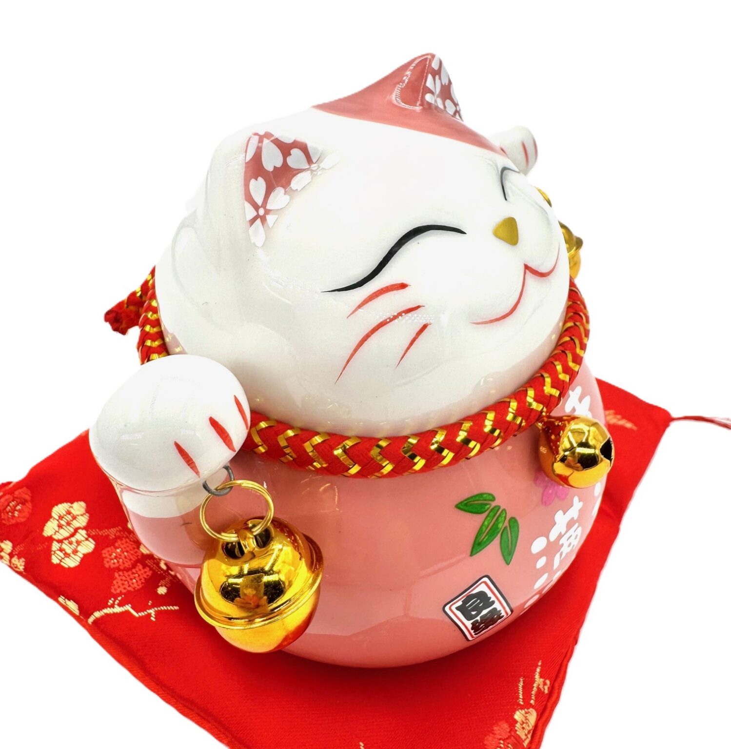 Wholesale – Lucky Cat Money Box on Cushion with 2 Bells (Pink). A fun money box to put your change in.
