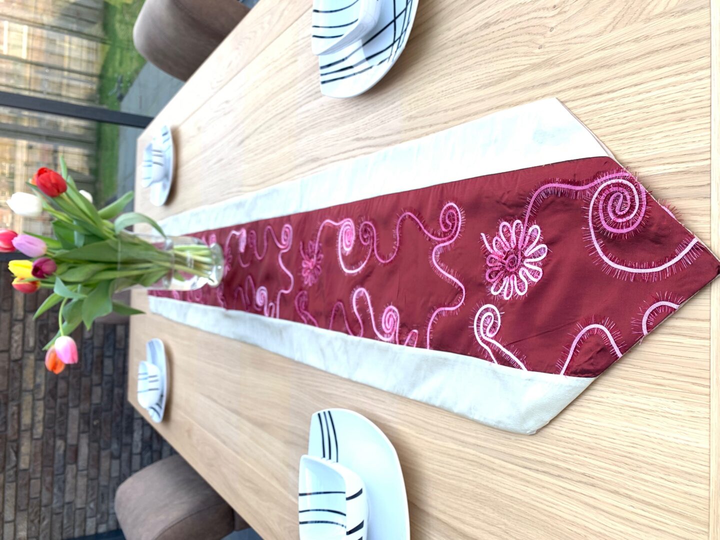 Elegant Embroidered Table Runner – Burgundy and Silver Decorative Table Cloth