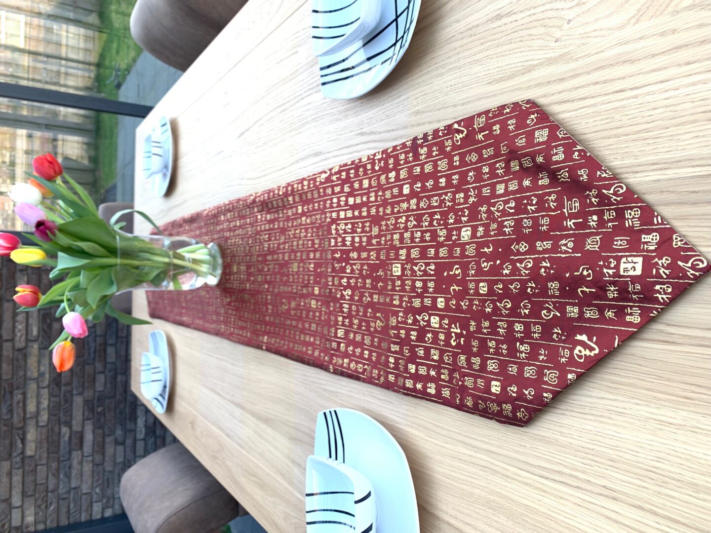 Elegant Embroidered Table Runner – Burgundy Decorative Table Cloth