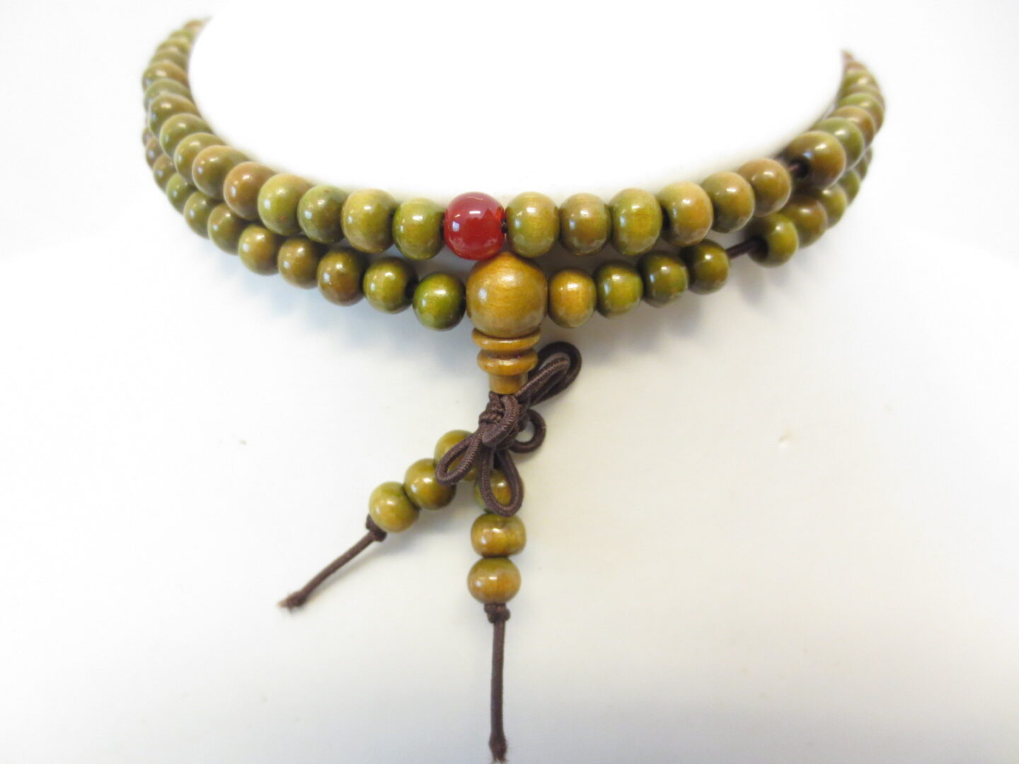 The beads are made of sandalwood. Mala is used to keep track with the chanting of a mantra, a practice which in Sanskrit is called Japa (repetition of prayers, spells and gods names).