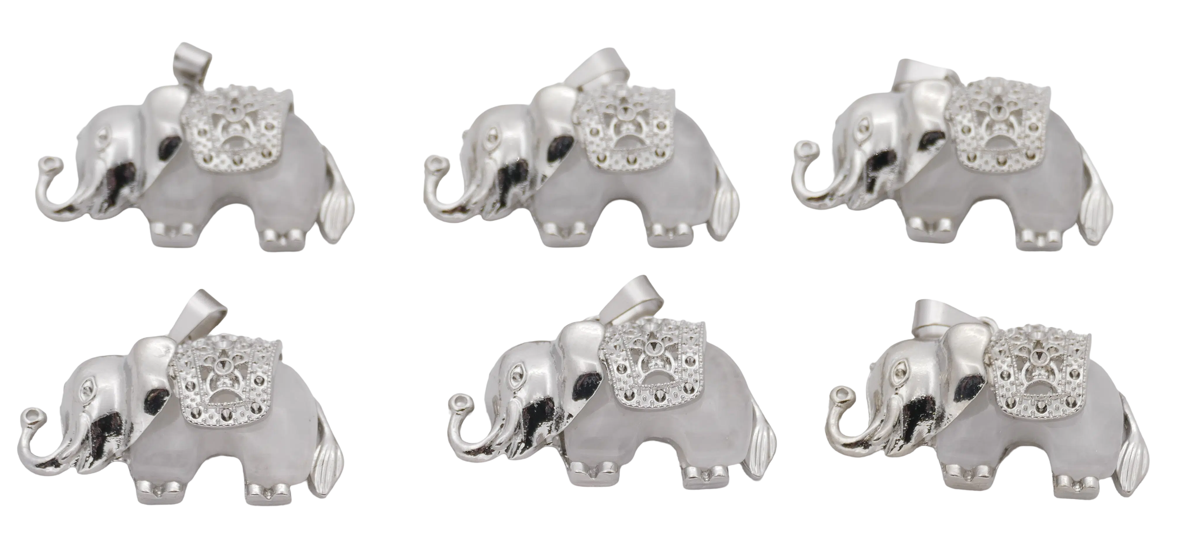 Wholesale – Rock Crystal Elephant Gemstone Pendants (Set of 6 Pieces)