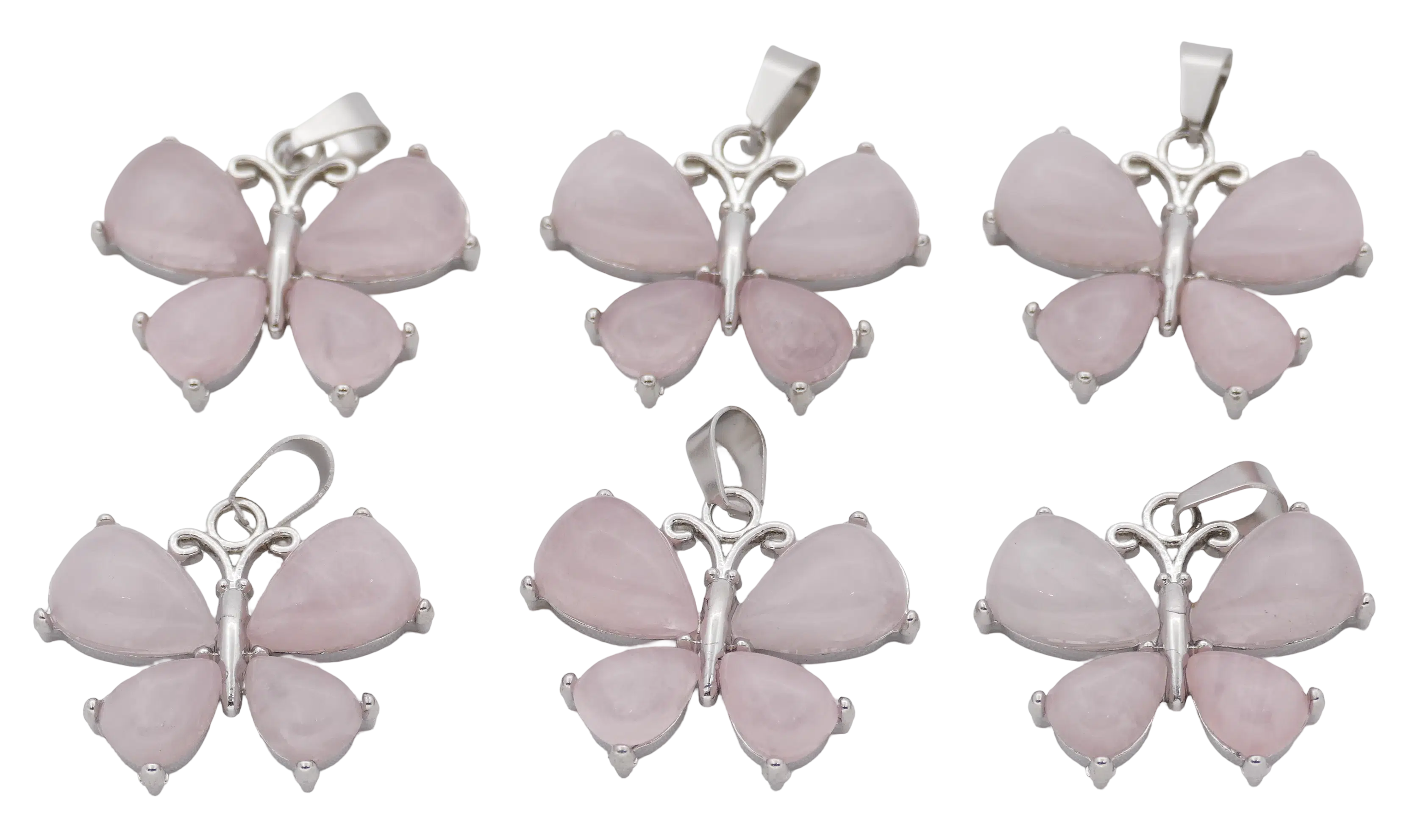 Wholesale – Rose Quartz Butterfly Gemstone Pendants (Set of 6 Pieces)
