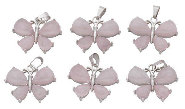 Wholesale – Rose Quartz Butterfly Gemstone Pendants (Set of 6 Pieces)