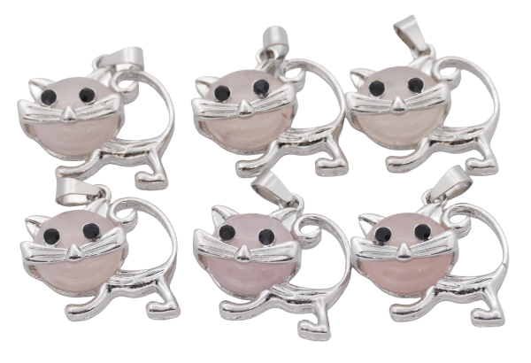 Wholesale – Rose Quartz Cat Gemstone Pendants (Set of 6 Pieces)
