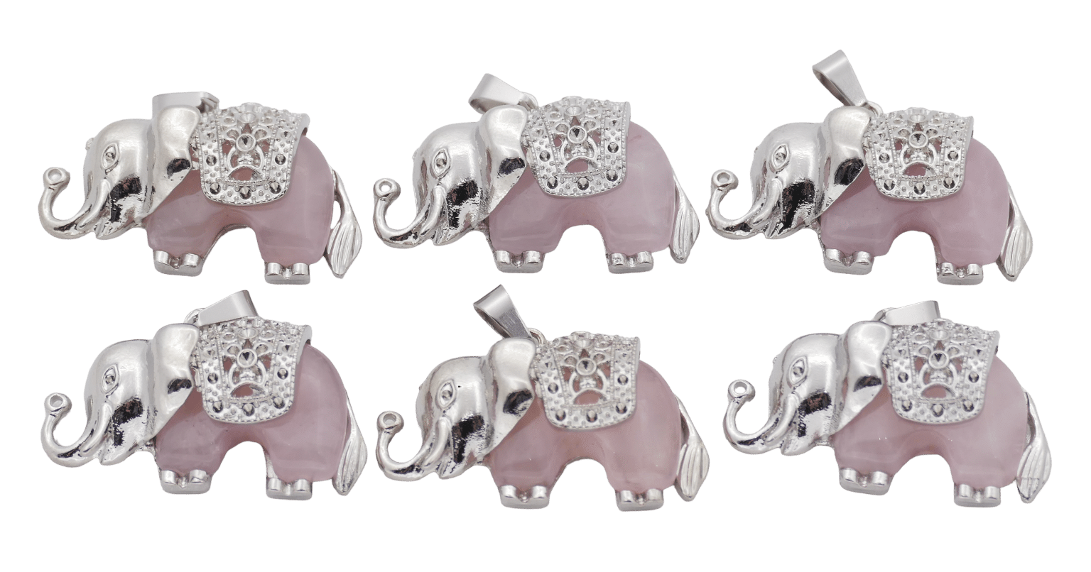 Wholesale – Roze Quartz Elephant Gemstone Pendants (Set of 6 Pieces)