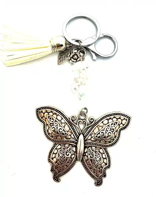 Home » Shop » Gifts and Lucky Cats » Keychains » Good Luck Keychains » Wholesale Butterfly Keychain with Howlite Stones & White Tassel
