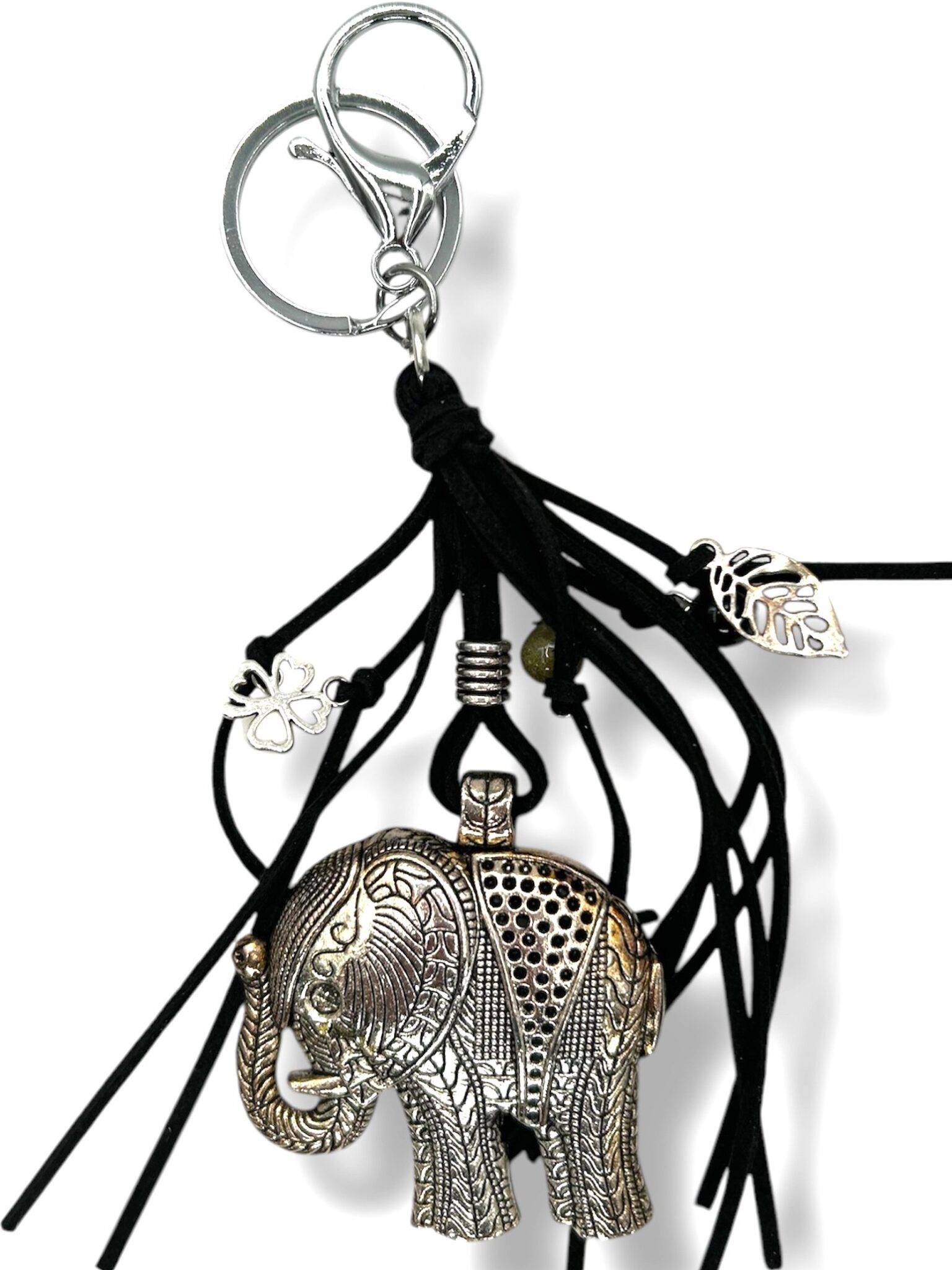 Bring positivity and good fortune wherever you go with this beautifully crafted Metal Elephant Keychain Charm. Designed with intricate silver detailing and accented by soft black tassels and beads, this elegant accessory symbolizes strength, wisdom, and prosperity. The elephant’s raised trunk represents the flow of good luck and protection, making it a meaningful gift or personal talisman. Perfect for keys, handbags, or backpacks, this charm blends style and symbolism effortlessly. Whether as a thoughtful present or a touch of spiritual inspiration, this elephant keychain adds a unique charm and uplifting energy to your daily life.