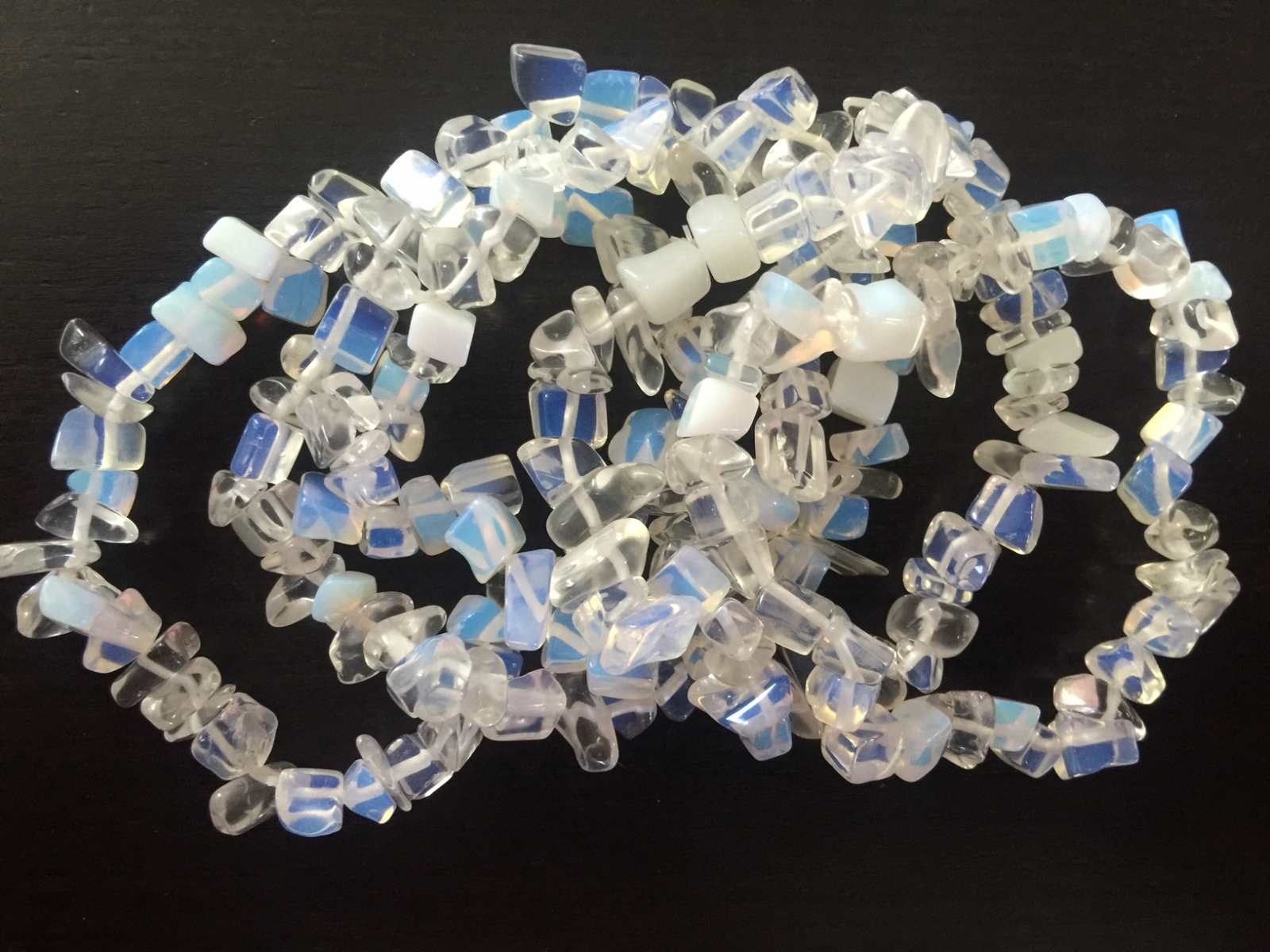 The bracelets are available in 21 different stones and colors. Each stone has it own character. These bracelets have elastic tapes.