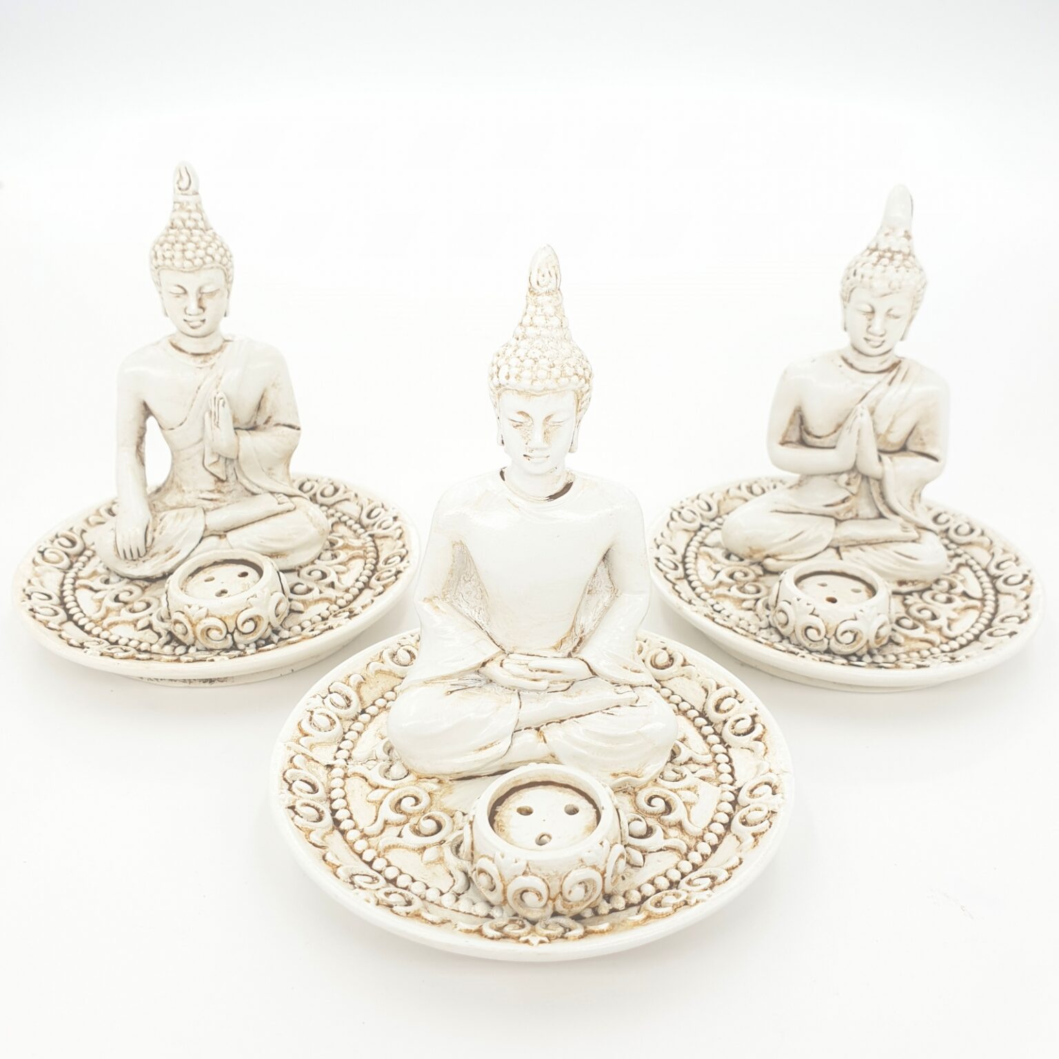 Home » Shop » Incense » Tibetan Buddha Set of 3 Incense Holders white
