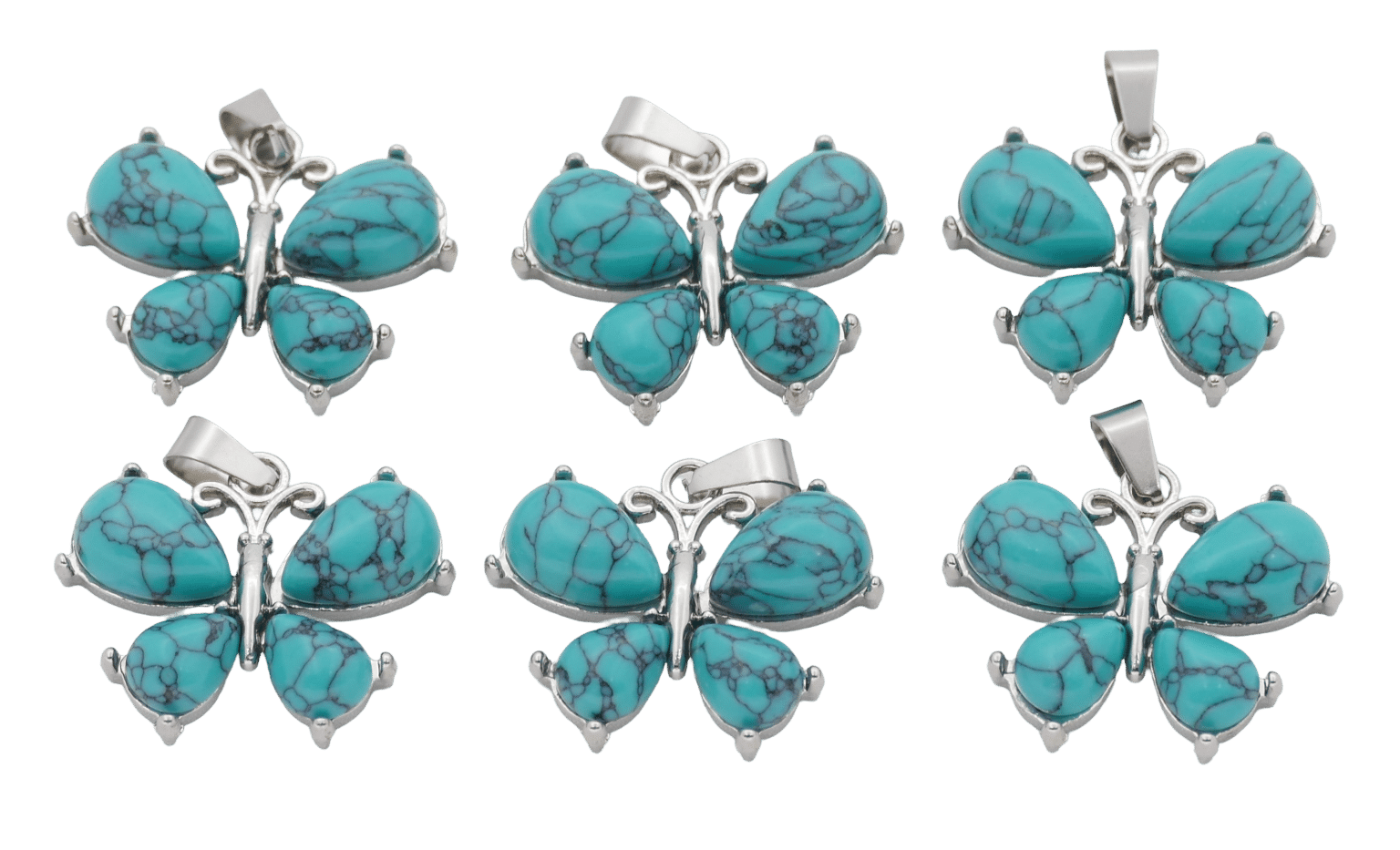 Wholesale – Turquoise Butterfly Gemstone Pendants (Set of 6 Pieces)