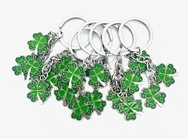 Bring a touch of luck everywhere you go with this eye-catching four-leaf clover keychain. Featuring a vibrant green enamel design with a shiny silver finish, this charm is the perfect symbol of good fortune and positivity. Ideal for attaching to your keys, backpack, purse, or luggage, it also makes a thoughtful gift for friends, family, or coworkers. Whether for St. Patrick’s Day, a special occasion, or just because, this durable and stylish keychain is both practical and meaningful. Carry your luck with you every day, or share it with someone who could use a little extra good fortune!