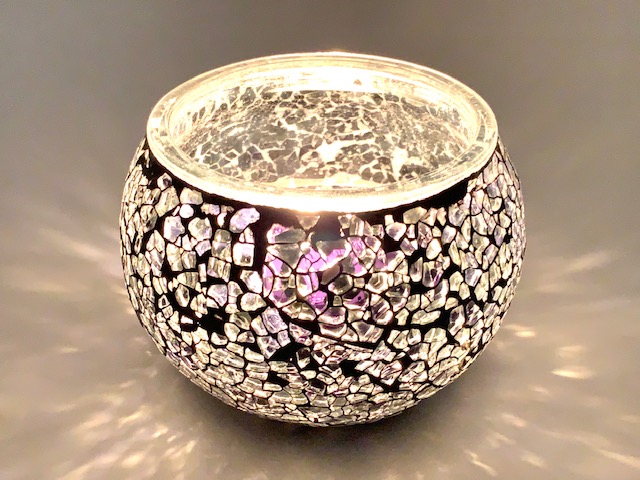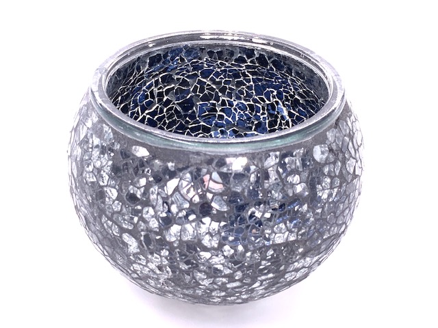 Mosaic Glass Tealight Candle Holders – Silver Gray