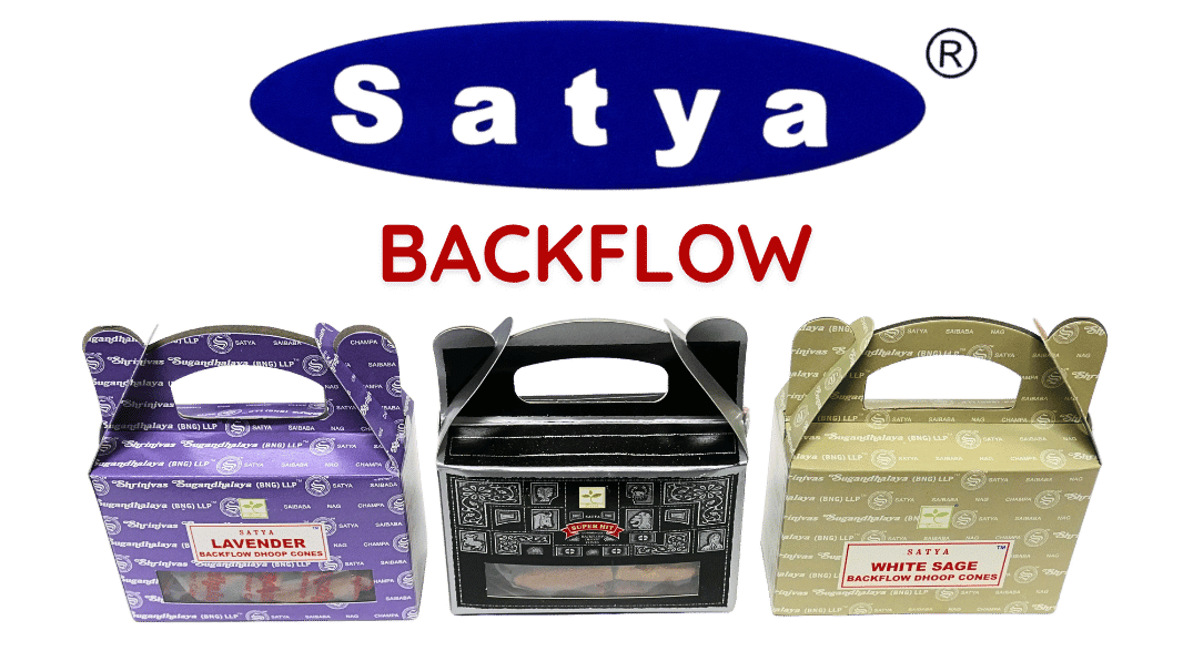 Wholesale Satya Backflow Incense Cones for retailers — designed for the “waterfall” smoke effect in compatible backflow burners. This range includes popular Satya scents. We offer a selection of backflow cones, including Nag Champa, White Sage, Dragon’s Blood, Sandalwood, and Palo Santo, as well as Satya backflow earth options. Our Satya backflow products are sourced from India and stored in Europe. So If you are sourcing wholesale satya backflow incense cones, start here and pair with our backflow burners for ready-to-sell sets.