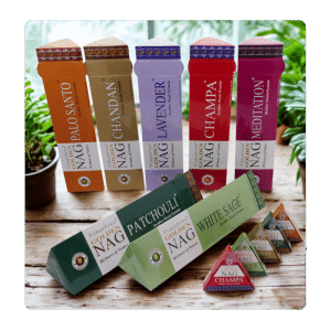 - Golden Nag Patchouli – earthy, spicy fragrance.