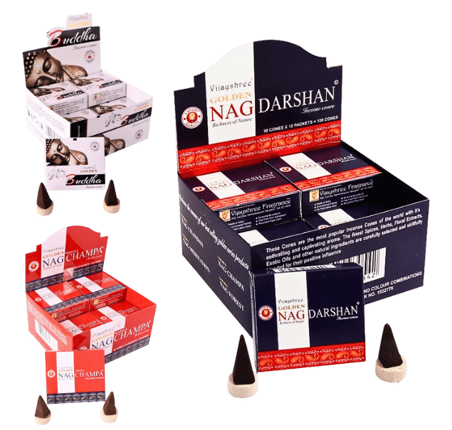So this is the place If you’re seeking wholesale Vijayshree Golden Nag incense cones for B2C sales. Also the place if you are you looking for a dependable supplier of Golden Nag incense cones in the EU or UK? Just browse below here to find the main varieties available to select for order. Dont forget to improve your offerings by pairing them with complementary cone burners to make eye-catching displays.